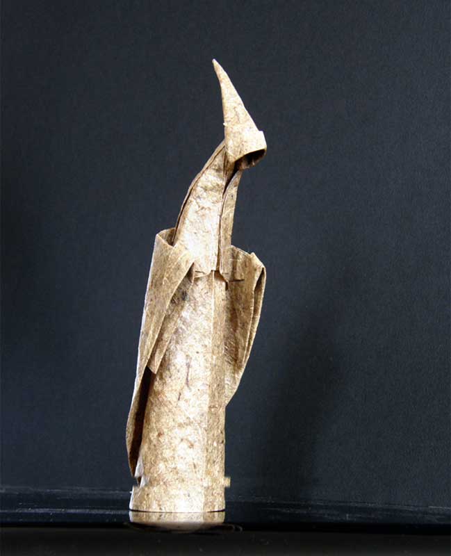 « Eric Joisel est l’un des artistes en origami les plus éminents au monde. Contrairement à de nombreux autres artistes en origami, Eric a une formation artistique formelle et a pratiqué l’art en tant que peintre, sculpteur et potier avant de se tourner vers l’origami. L’influence de cette expérience sur son travail en origami est claire : son travail a une profondeur et une maturité que peu d’autres artistes en origami peuvent seulement approcher. Eric ne s’appuie pas sur l’ingéniosité technique pour créer ses sculptures. Au lieu de cela, il travaille et retravaille ses créations jusqu’à ce qu’elles soient parfaites. «