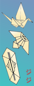 Le papier a été inventé en Chine vers 105 après JC. Au cours du septième siècle, un maître coréen de la fabrication du papier a introduit le papier à la cour japonaise. Le Prince japonais Shotoku a été tellement impressionné qu’il a planté des forêts spécifiquement pour produire un papier d’origami de meilleure qualité. A cette époque, le papier était très rare et cher et utilisé uniquement par les riches. Il était principalement utilisé pour les cérémonies shinto, avec des modèles connus uniquement des prêtres. Ce premier origami était abstrait et symbolique. Des siècles plus tard, le papier est devenu plus courant et moins cher à produire. L’origami a commencé à être utilisé pour le divertissement. Les modèles figurés à gauche, dont la célèbre grue, symbole de la paix, ont probablement 1000 ans, mais jusqu’au XXe siècle, il n’y avait que quelques centaines de modèles, tous très simples et conçus spécialement pour les enfants.