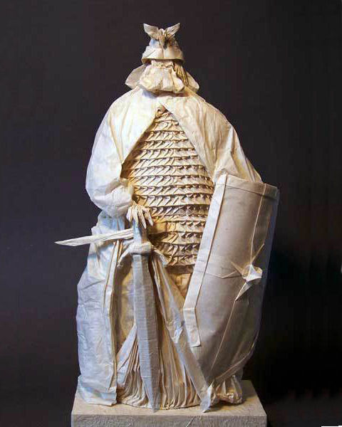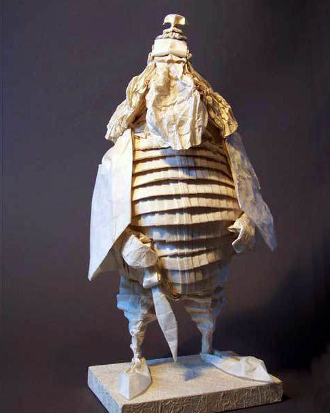 Je reviens alors à la technique normale de « box-pleating ». Par rapport aux techniques traditionnelles, elle apporte une victoire facile. Mais c’est normal dans mon cas : par rapport à beaucoup d’autres créateurs, je ne suis pas doué pour la géométrie. Mes aptitudes dans ce domaine sont très limitées. Mais je m’en fiche. Ce qui m’intéresse vraiment, ce n’est pas la conception géométrique, mais un résultat final en 3D, aussi vivant que possible. De plus, cette technique peut produire de nombreuses textures et détails différents, comme vous pouvez le voir dans la série des Barbares.