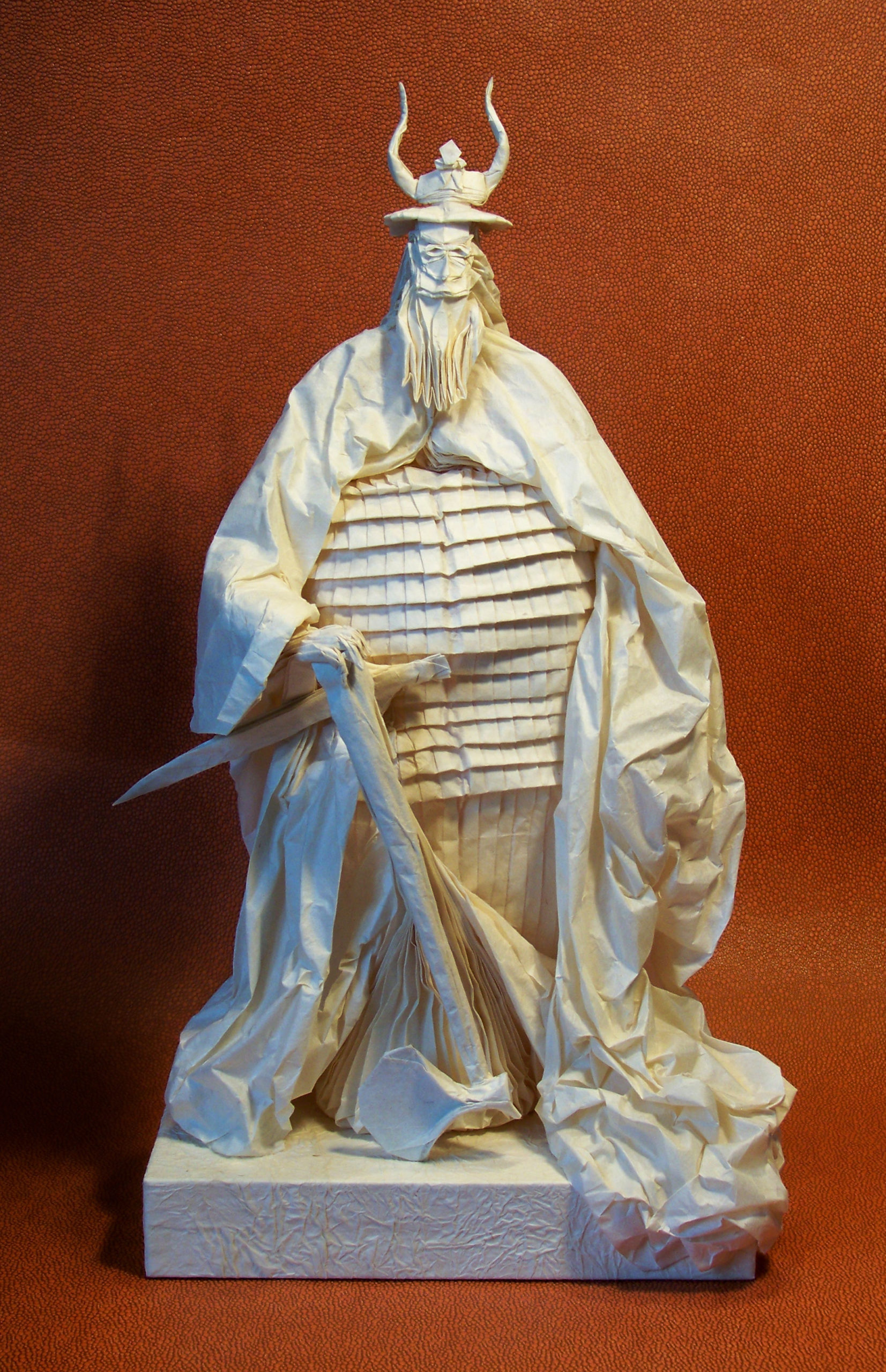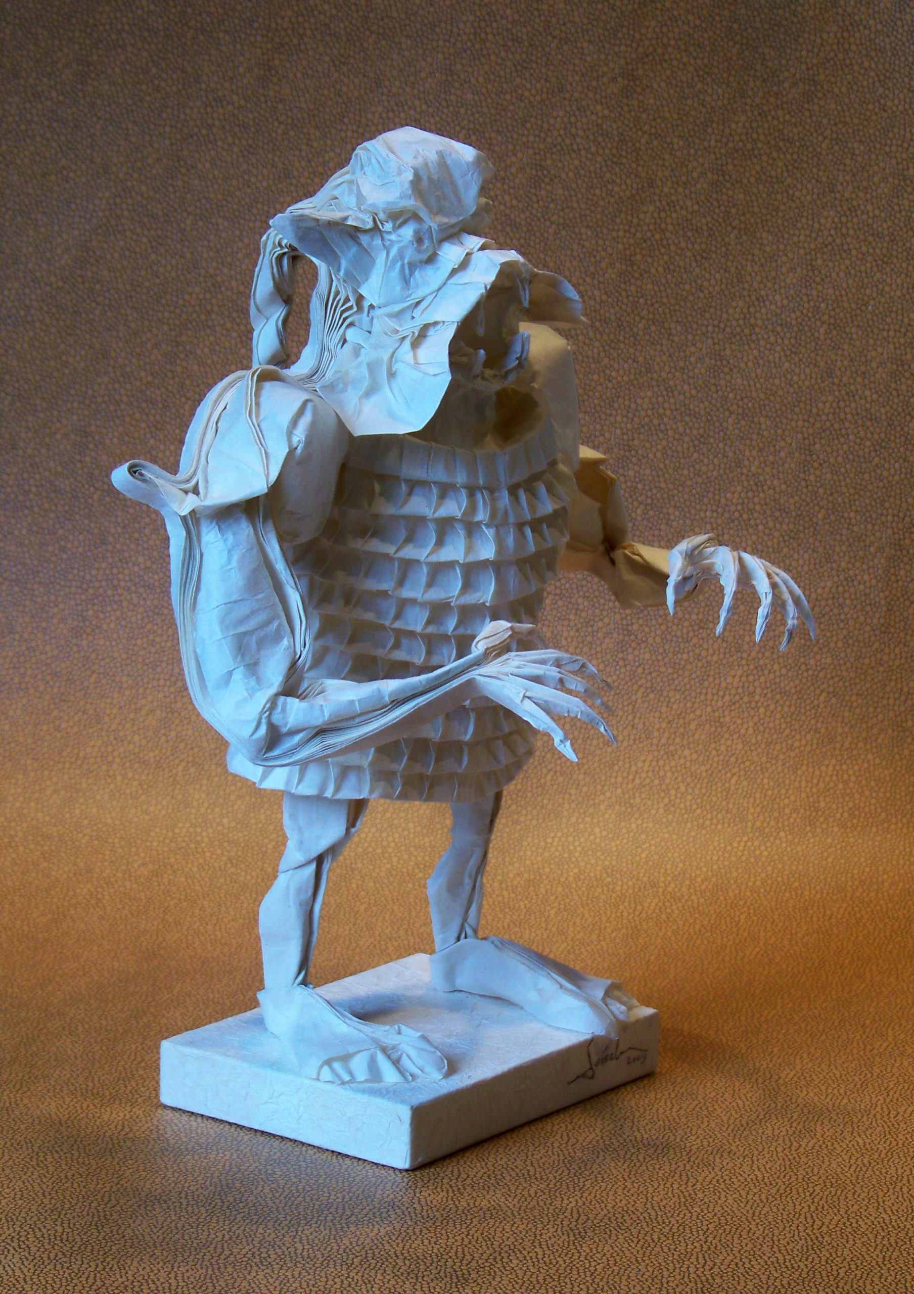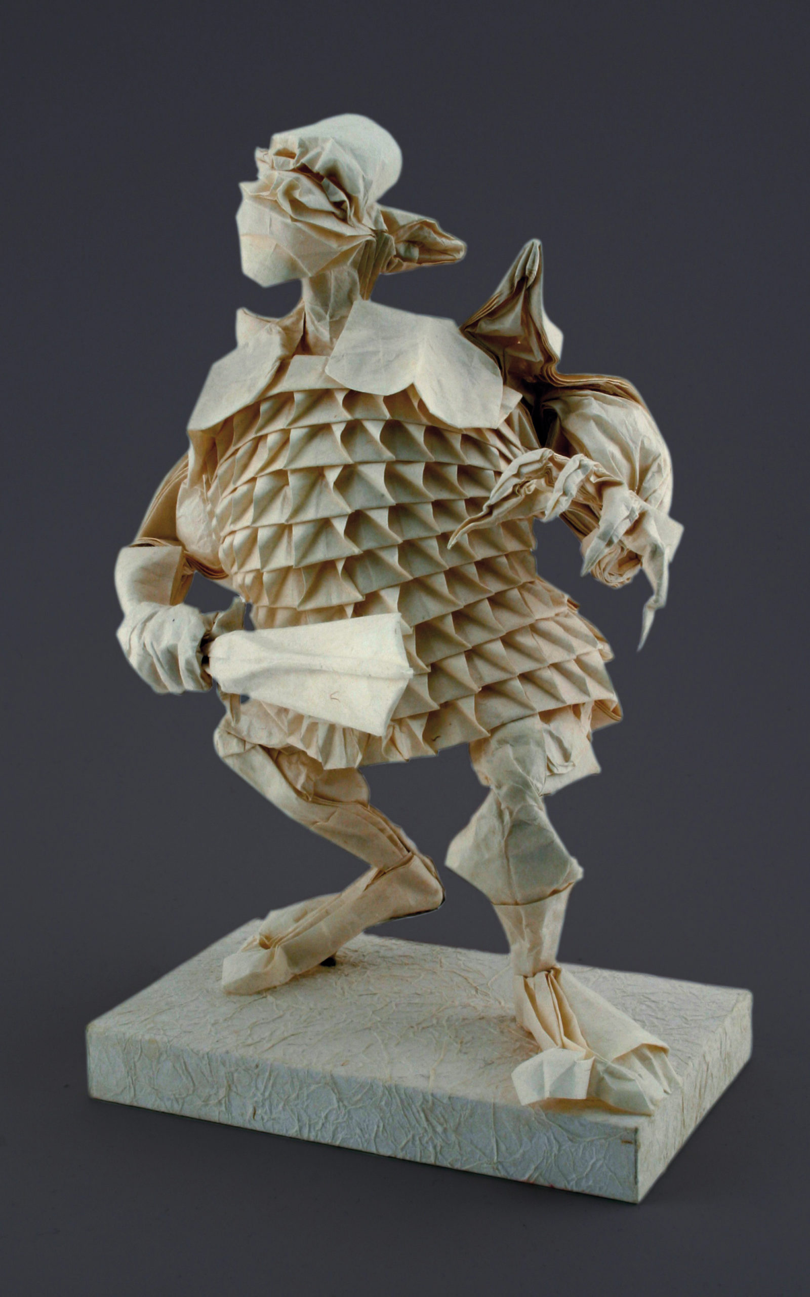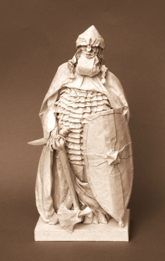Je reviens alors à la technique normale de « box-pleating ». Par rapport aux techniques traditionnelles, elle apporte une victoire facile. Mais c’est normal dans mon cas : par rapport à beaucoup d’autres créateurs, je ne suis pas doué pour la géométrie. Mes aptitudes dans ce domaine sont très limitées. Mais je m’en fiche. Ce qui m’intéresse vraiment, ce n’est pas la conception géométrique, mais un résultat final en 3D, aussi vivant que possible. De plus, cette technique peut produire de nombreuses textures et détails différents, comme vous pouvez le voir dans la série des Barbares.