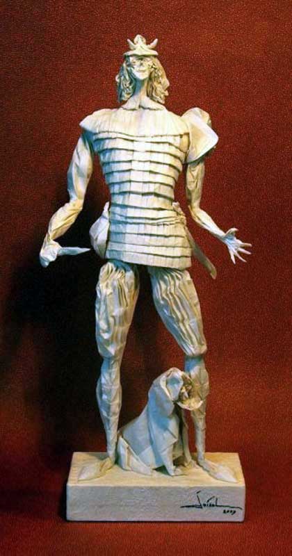 Laissez-moi essayer d’expliquer les différentes étapes de l’origami que j’ai traversées au cours de ma carrière, le résultat actuel est la série des « Barbares » (que j’appelle ainsi en référence au film « Conan le Barbare » avec Arnold Swartzenegger), un personnage de « Merveilleux héroïque » qui pourrait représenter le premier modèle de la série (en fait, je l’ai changé en Aragorn, le Seigneur des Anneaux.)